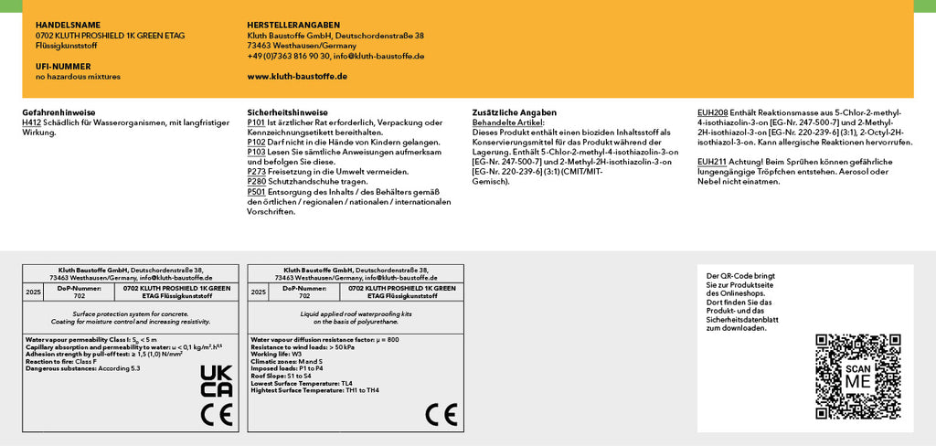 Produktdatenblatt 0702 Kluth PROSHIELD 1K GREEN ETAG