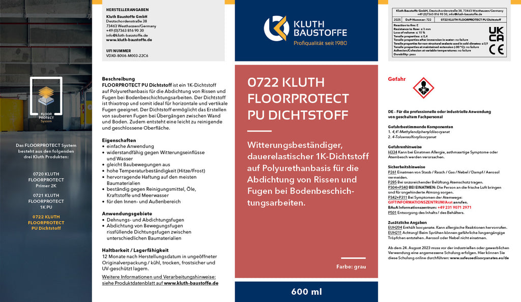 Produktdatenblatt 0722 Kluth FLOORPROTECT PU Dichtstoff 600 ml