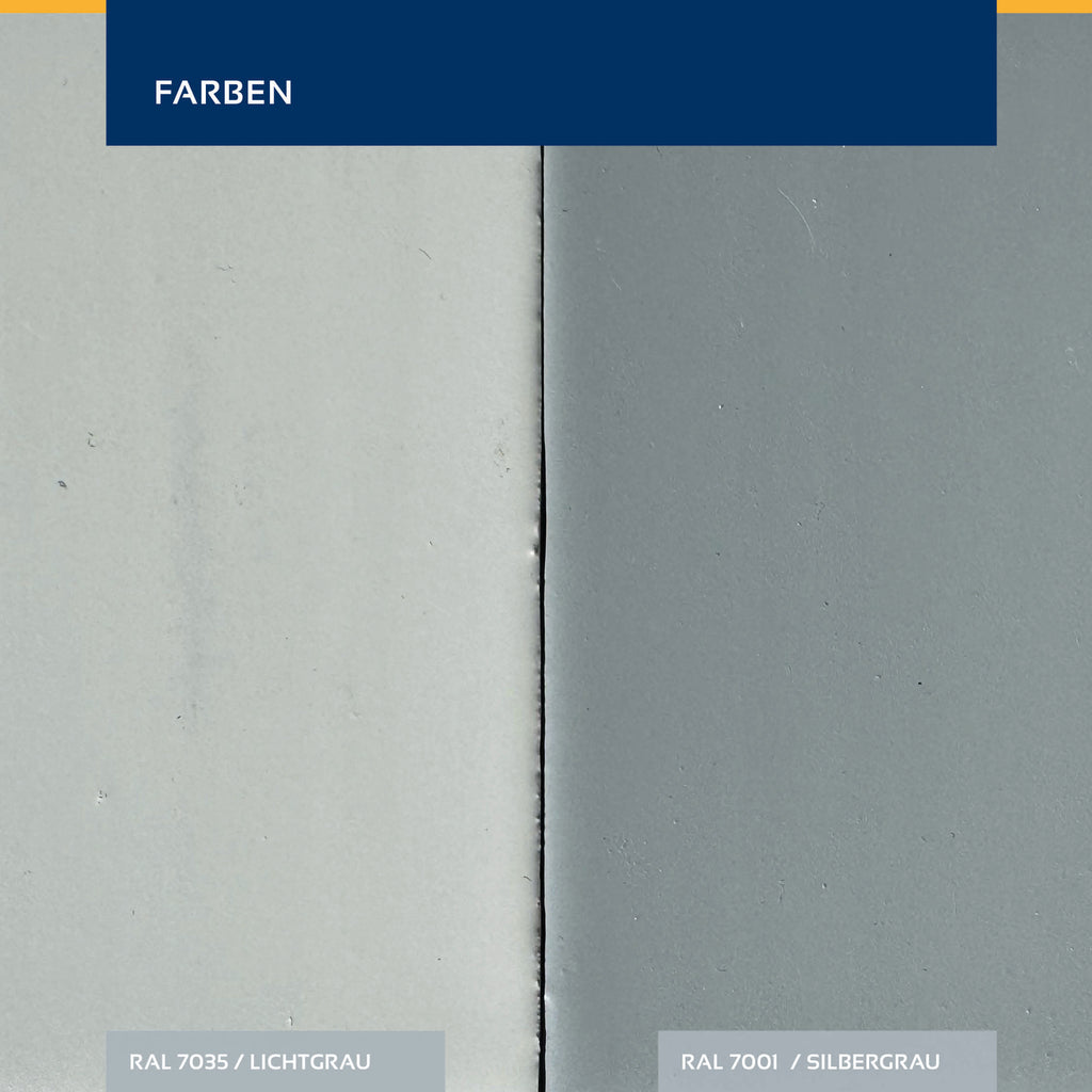 - Farben: hellgrau und silbergrau (weitere Farben auf Anfrage)