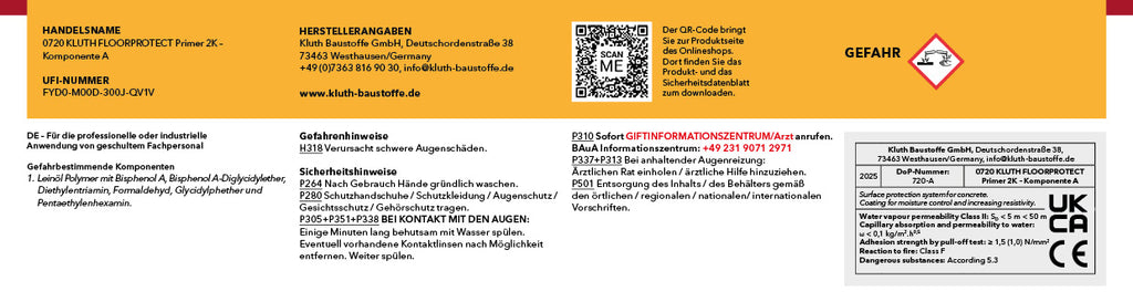 Sicherheitsdatenblatt 0720 Kluth FLOORPROTECT Primer 2K - Komponente A